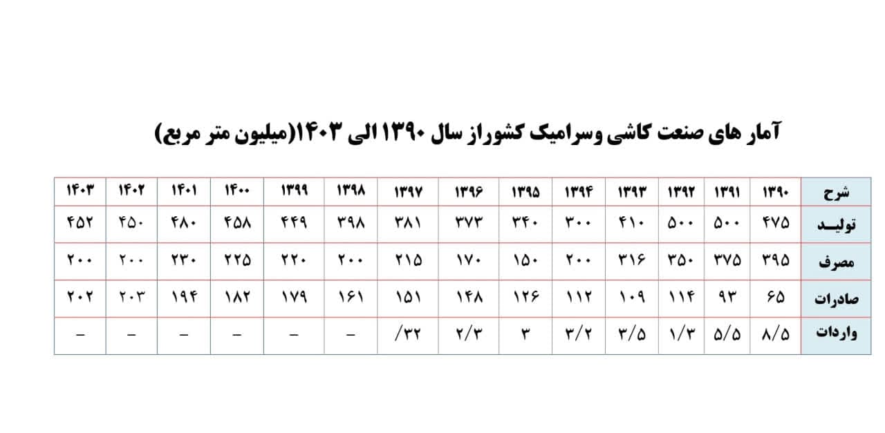 آمار 13 ساله صنعت کاشی و سرامیک ایران